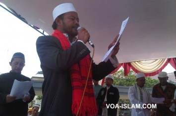 Bagaimana saudara-saudara, siap untuk menghibahkan nyawa? Siap berjuang dengan harta? Siap berjuang dengan tenaga? Takbir!” seru pimpinan Ponpes Darul Falah tersebut.